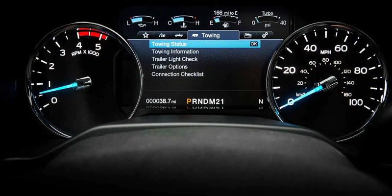 <p>Taking a look inside the cab of the truck, there are many exciting features and plenty of legroom in the back seat. Standard in most trim levels is a tilt-and-telescoping steering wheel, vinyl upholstery, a driver information display, and a four-speaker audio system. </br></br>Found in the XLT is a 4.2-inch display, while at the Lariat level you will find an 8-inch touchscreen display center, dual-zone automatic climate control, a Sync 3 infotainment system with Android Auto and Apple CarPlay capability, a Wi-Fi hotspot, two 110-volt household-style power outlets, and a B&O Play 10-speaker audio system. </br></br>At the King Ranch, Platinum, and Limited levels you get automatic wipers, automatic high beams, a heated steering wheel, and adaptive cruise control. A panoramic sunroof is available for the Limited. </p>